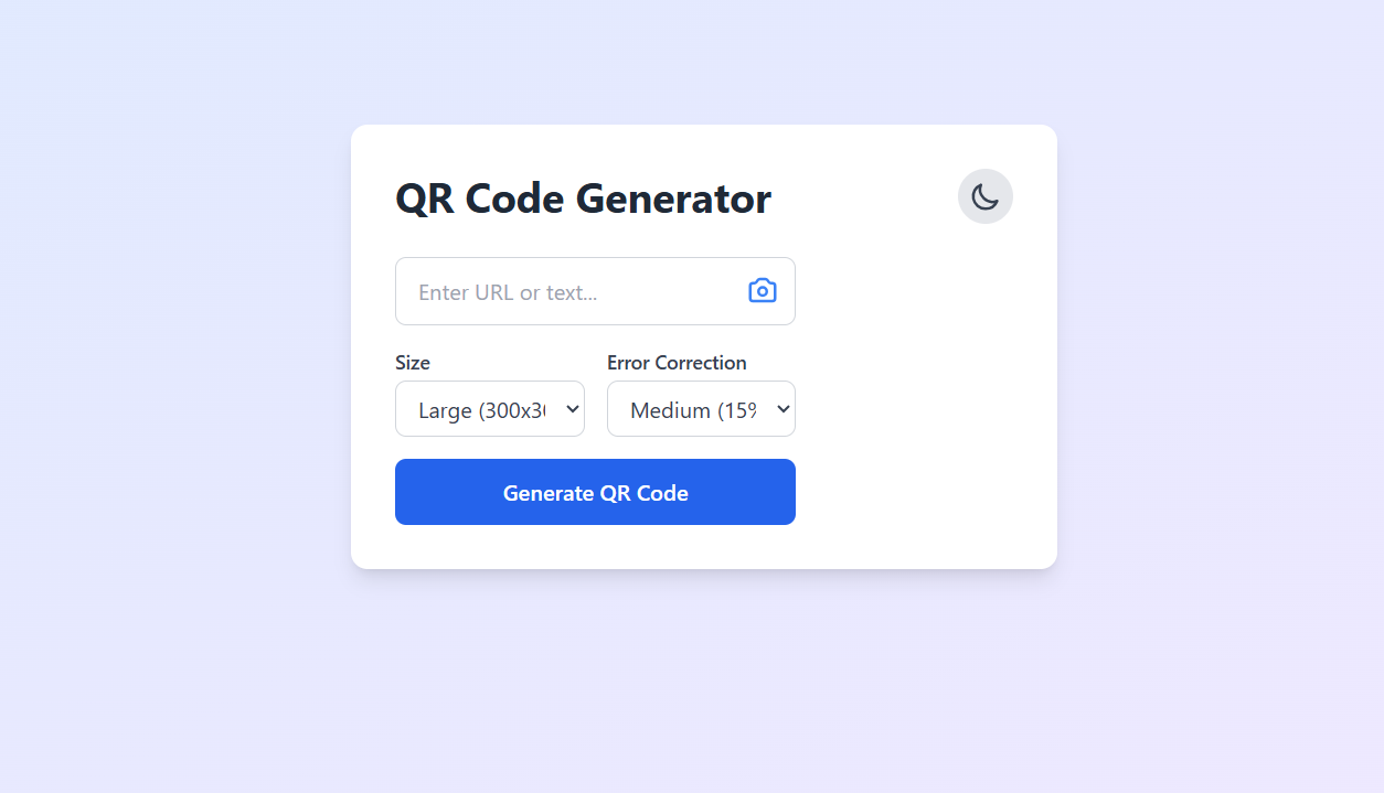 Herhangi bir metni veya bağlantıyı saniyeler içinde QR koda çeviren modern ve kullanıcı dostu bir uygulamadır. Yönlendirme olmadan çalışır. Temiz ve sezgisel arayüzü sayesinde farklı boyut ve hata düzeltme seviyelerinde QR kod üretimi sağlar.